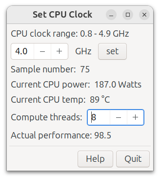 Change CPU clock speed and monitor CPU power and